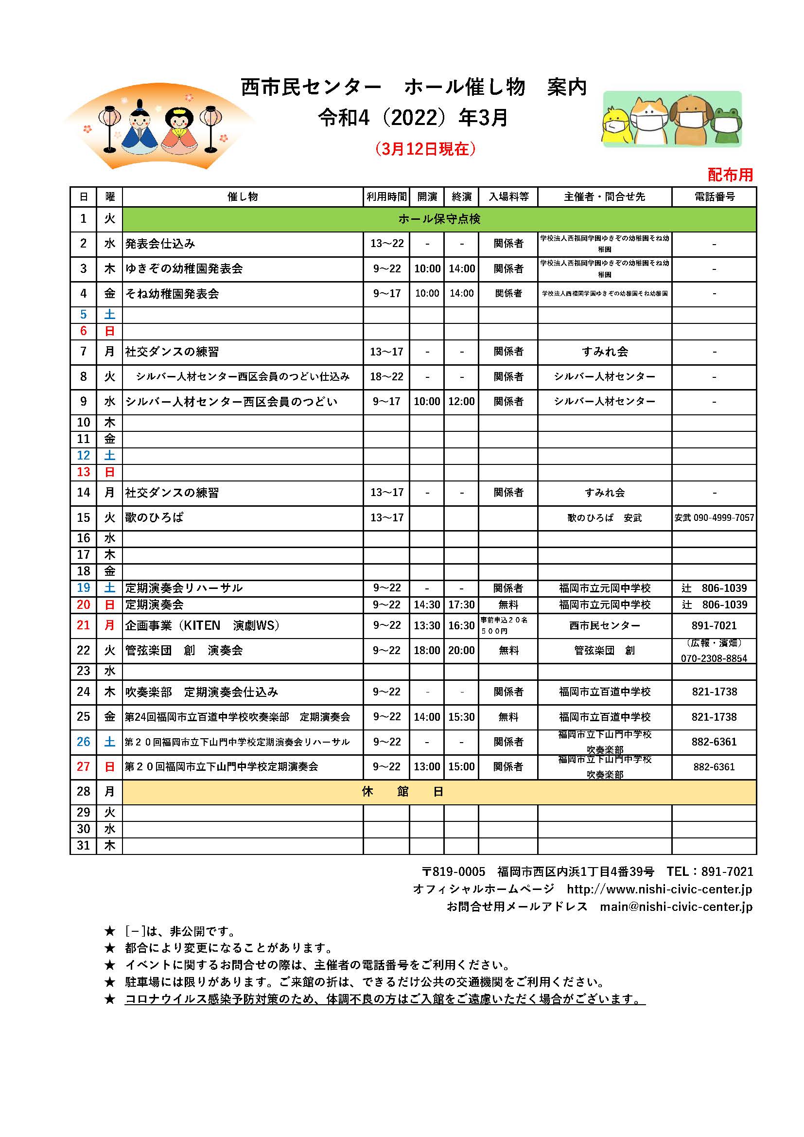 3月ホール催し物